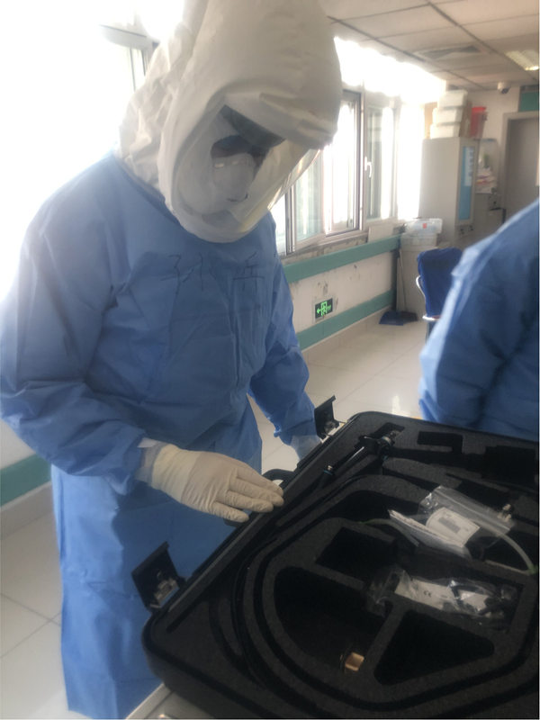氣管鏡檢查可以直觀了解患者氣道及肺的情況,還可以進行肺泡灌洗獲得最準確的病原學證據,這對后續的治療至關重要。但在氣管鏡操作過程中,患者氣道完全開放,醫務人員近距離接觸患者呼出的氣體,職業暴露風險極大。降低感染風險的唯一辦法是盡快完成檢查,但是,穿著全套防護服,戴著護目鏡、幾層手套,雙手、雙眼的靈活性大打折扣。這個檢查是對操作者心理抗壓能力和操作嫻熟程度的雙重考驗,也正因為如此,此前這里的患者從未接受過氣管鏡檢查?!拔襾戆??!睂O兵一錘定音。