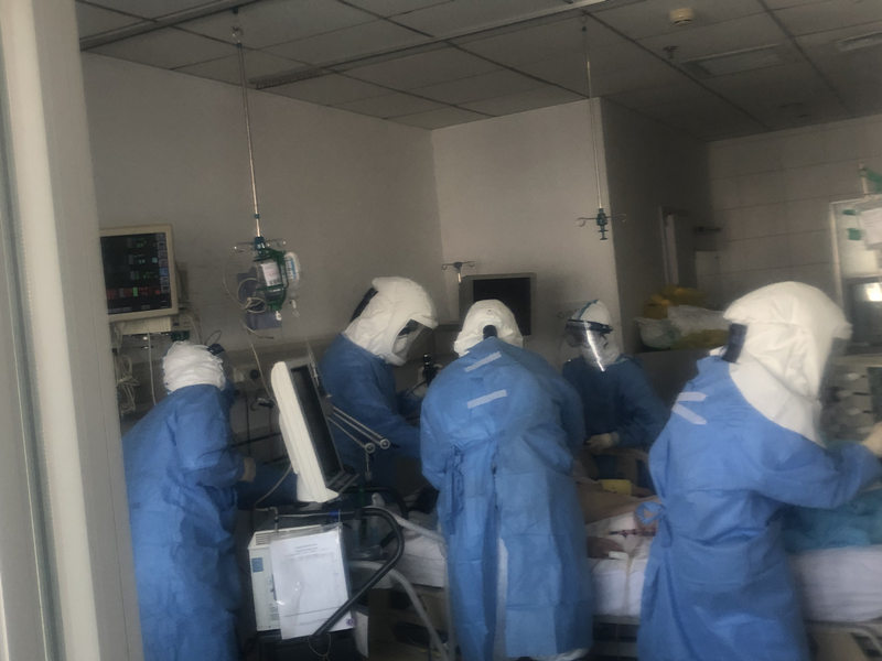 孫兵開始夜以繼日地沖鋒在一線,與死神“角力”。每天早晨,孫兵早早就坐在查房室開始查房,從呼吸機機械通氣策略到ECMO并發癥的預防,從抗生素的選擇到出入量目標管理,從鎮靜鎮痛到血栓預防,從營養支持到血糖控制,孫兵為每一名患者制定了全面而細致的治療方案,同時,根據每名患者不同情況提出明確而嚴格的目標要求。查房后,他依然要穿上防護服進入隔離病房進行查體、吸痰和具體指導,直到下午1點左右才能出來吃午飯。下午3點與專家討論結束后,再次進入隔離病房,查體、吸痰、操作,檢查治療方案是否落實、目標是否達到,直到晚上8點多才出來。晚上9點多回到酒店后,他的工作尚不能結束,他還要總結、反思患者的各項治療與效果。