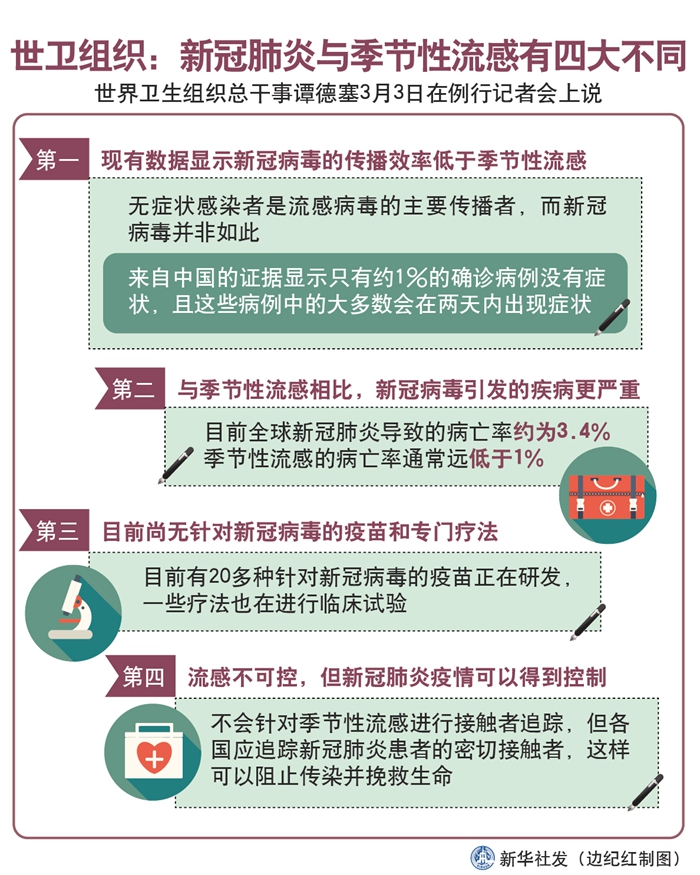 世衛組織:新冠肺炎與季節性流感有4大不同-新華網