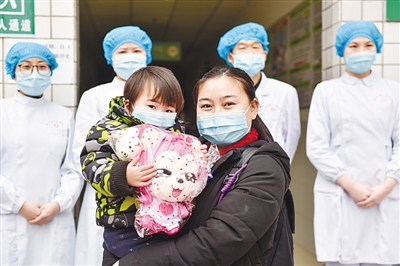 2月14日,一名新冠肺炎患兒從湖北省秭歸縣人民醫(yī)院感染性疾病科治愈出院。王家滿(mǎn)攝/光明圖片