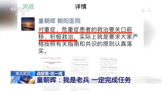 關(guān)口前移,就是童朝暉和專家們經(jīng)過臨床觀察和研討之后,提出的重要診療建議,已經(jīng)納入新冠肺炎診療方案。