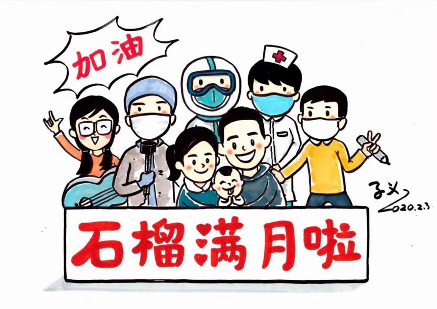 △插畫師網友為“小石榴”手繪“滿月全家福”