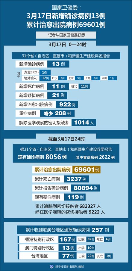 國家衛(wèi)健委:3月17日新增確診病例13例 累計(jì)治愈出院病例69601例-新華網(wǎng)