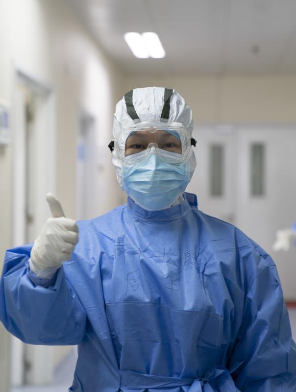 來到武漢已經一個月了,周華坦言自己很想家。老父親因病排尿困難,長期插著導尿管,平日里都是周華親自給父親更換。如今,照顧年邁的父親和兒子的重任都落在愛人的身上了。同學、同事聽說她去醫療隊,紛紛打電話、發微信告訴她“家里有事找我吧”。和家里人視頻,老父親耳背常聽不清她講話,她就沖著屏幕笑,給老父親豎大拇指,讓他知道自己很好,讓他放心。“我站在救治一線,是作為一名重癥醫學人的責任與使命,家人的支持讓我放下包袱、蹈險逆行,后方的支援讓我堅定信心、竭力抗疫。疫情不退,我們不撤!”