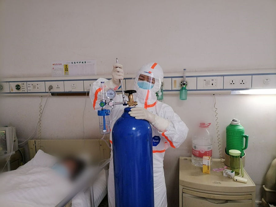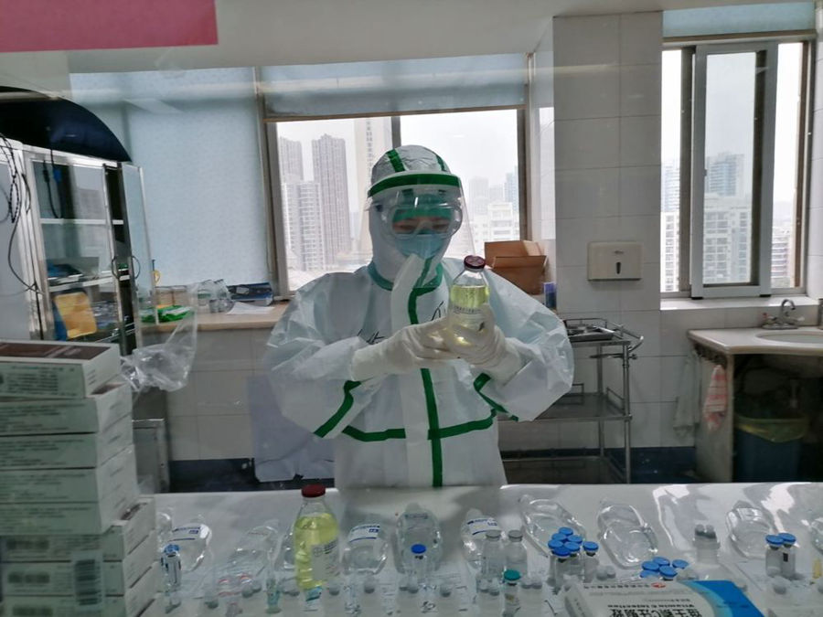 圖為四川大學華西醫(yī)院援湖北醫(yī)療隊醫(yī)務(wù)人員銀鈴在工作中。