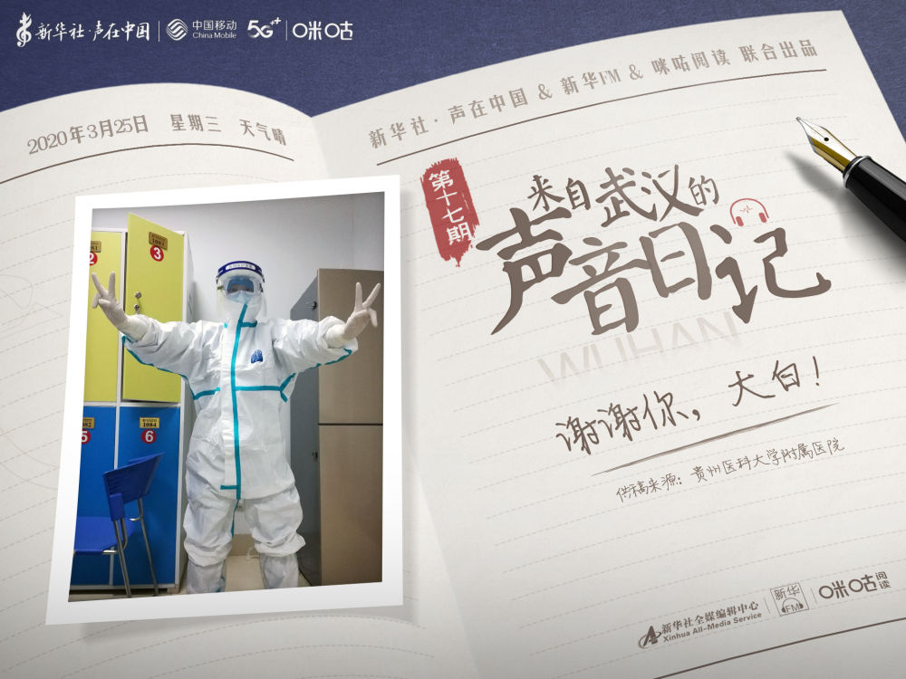 點(diǎn)擊收聽(tīng)《來(lái)自武漢的聲音日記》第十七期。今天的日記來(lái)自貴州醫(yī)科大學(xué)附屬醫(yī)院援武漢醫(yī)療隊(duì)程小雪。