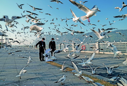 自1985年冬天第一次大規(guī)模造訪春城以來,紅嘴鷗便與昆明人結(jié)下了不解情緣。這場疫情非但沒讓人鷗疏遠,反而讓彼此更加親密,不離不棄。