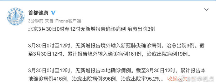 北京3月30日0時至12時無新增報告確診病例 治愈出院3例-新華網
