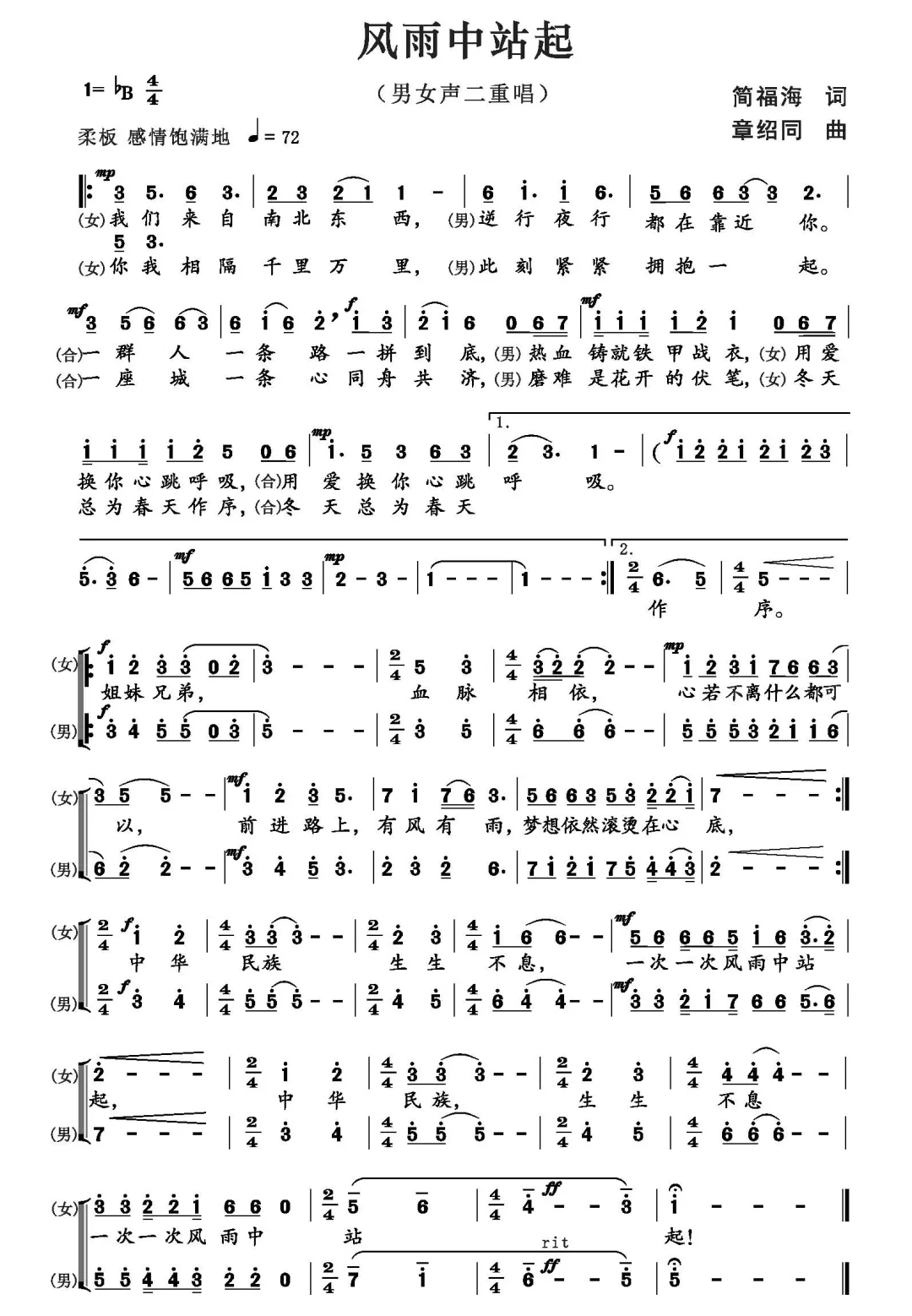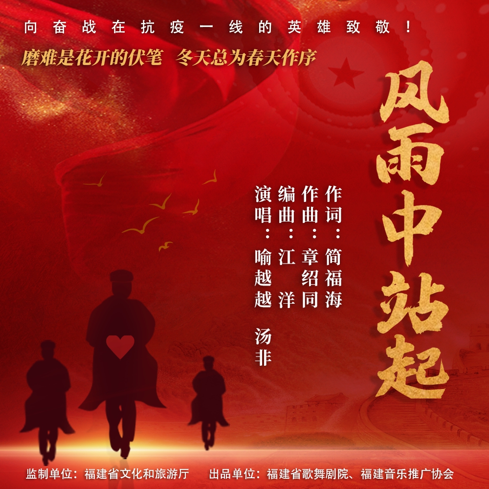 近日,由簡福海作詞,著名作曲家章紹同作曲,知名音樂制作人江洋編曲,著名青年歌唱家喻越越、著名青年歌唱家湯非聯袂獻聲的公益歌曲《風雨中站起》正式上線。該歌曲由福建省文化和旅游廳監制,福建省歌舞劇院和福建音樂推廣協會出品。