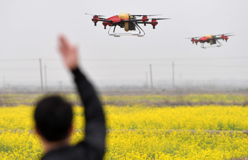 在江西省南昌市南昌縣蔣巷鎮,無人機在對油菜田進行植保作業。新華社記者 彭昭之 攝