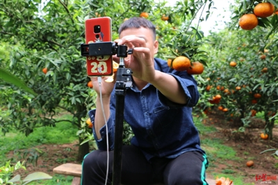 直播地點選在了橘子地里,直播的同時,助手從樹上采摘,保證網友見到的都是新鮮采摘。