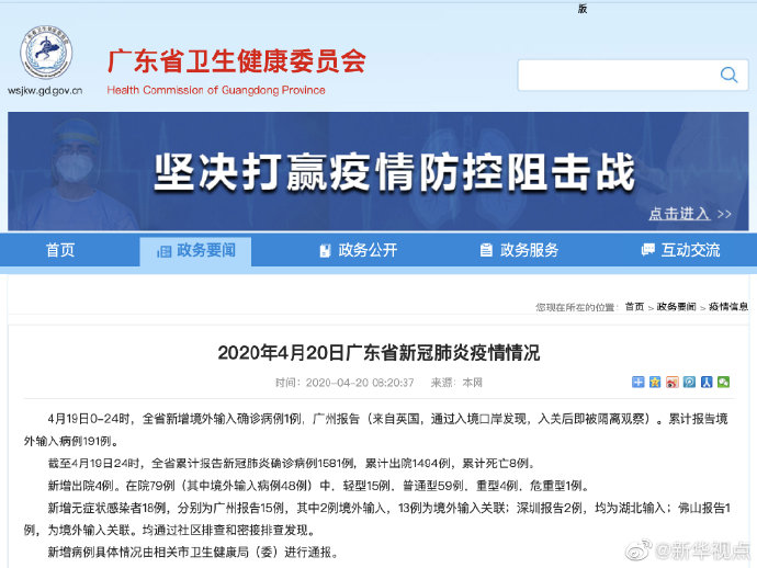 4月19日廣東省新增境外輸入確診病例1例-新華網