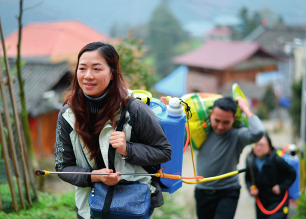 3月7日,貴州省錦屏縣河口鄉(xiāng)加池村,錦屏縣融媒體中心幫扶干部楊曉琴(左)和隊友給群眾送農(nóng)用物資 楊楹攝