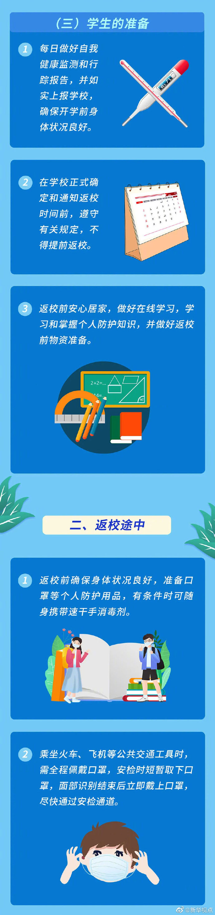 返校途中如何正確防護(hù)?開學(xué)后上課、用餐又該注意啥?周末還能出校改善伙食嗎?國(guó)家衛(wèi)健委、教育部日前聯(lián)合印發(fā)《大專院校新冠肺炎疫情防控技術(shù)方案》,馬上開學(xué)的你,快收下這份防控寶典↓(圖片來源:健康中國(guó))(記者溫競(jìng)?cè)A) ?????
