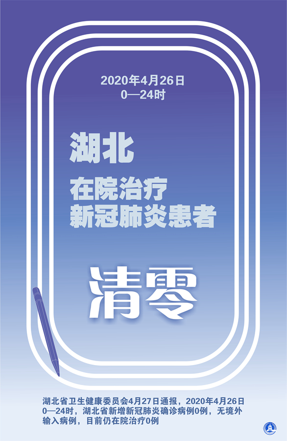 新華社武漢4月27日電(記者廖君、馮國棟)據(jù)湖北省衛(wèi)生健康委員會27日通報(bào),2020年4月26日0—24時(shí),湖北省新增新冠肺炎確診病例0例,無境外輸入病例。