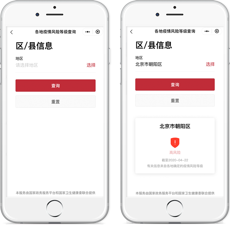 出行前,你可以用此服務(wù)查詢你所在地和目的地的疫情風(fēng)險(xiǎn)等級(jí)。該服務(wù)根據(jù)國(guó)家衛(wèi)生健康委數(shù)據(jù)進(jìn)行動(dòng)態(tài)更新,只需簡(jiǎn)單輸入地區(qū)即可查詢。