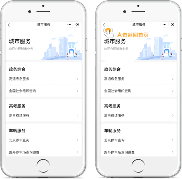 城市服務(wù)還會(huì)根據(jù)定位城市,為你智能化推薦當(dāng)?shù)氐膶?shí)用功能,如停車查詢、汽車售票、舉報(bào)中心等服務(wù),讓你的出行更省心。(如定位有誤可在首頁(yè)左上角進(jìn)行切換。)