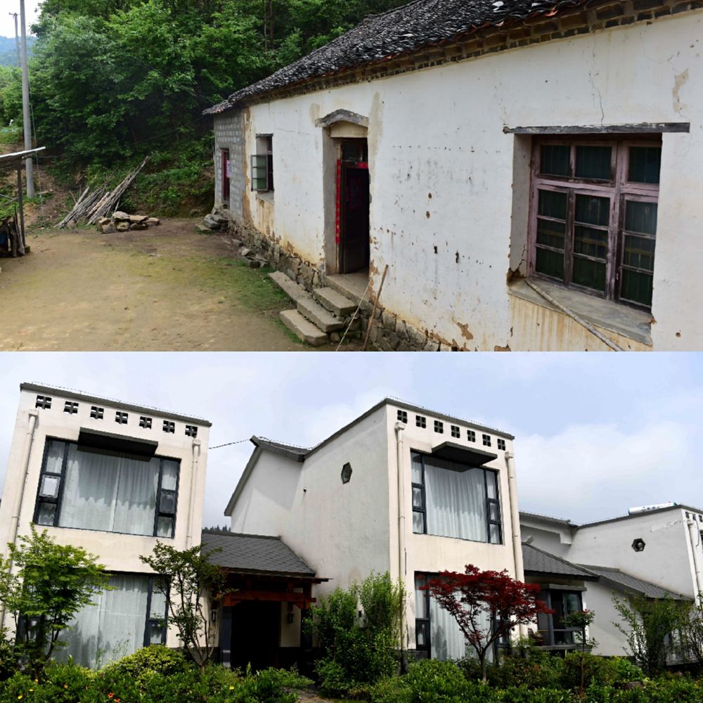 ?。ㄉ蠄D:過去金寨人守著柴火過日子,新華社記者張曙光攝;下圖:2020年4月16日,大灣村村民在金寨縣花石鄉茶產業扶貧車間里加工茶葉。新華社記者劉軍喜攝)