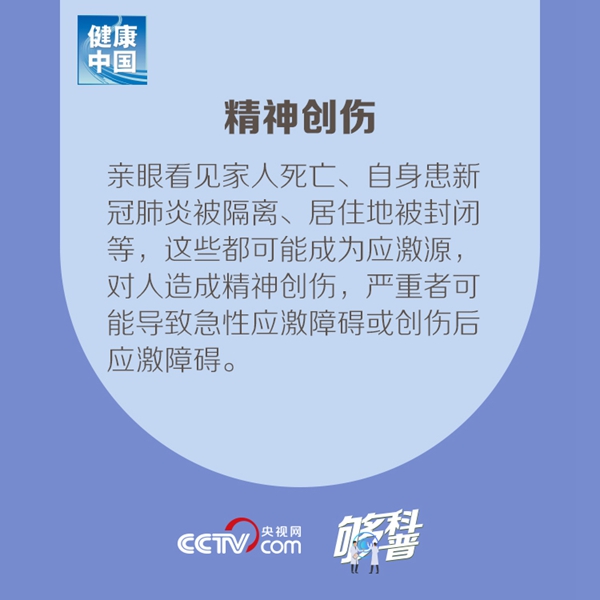 新冠肺炎疫情影響范圍之廣、持續時間之長、程度之重,身處其中的每個人都有切身感受。通過積極的應對和干預措施,大家能夠逐漸恢復正常生活、學習和工作。但在疫情結束后,可能會有一部分人出現各種各樣的心理問題或精神疾病。疫情結束后最需要警惕的心理問題和精神疾病有哪些?該如何應對?(資料來源:《新型冠狀病毒肺炎心理健康指導手冊》)
