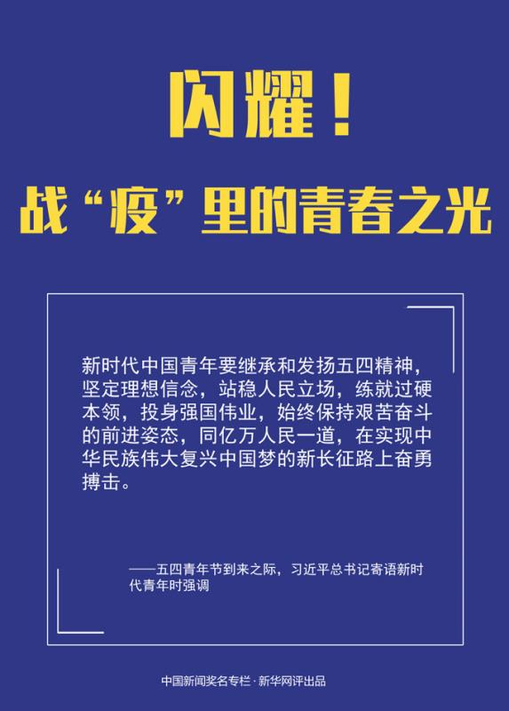 奮斗是青春最亮麗的底色。在新冠肺炎疫情防控斗爭(zhēng)中,無(wú)論是身在前線,還是守護(hù)家鄉(xiāng),無(wú)論是抗擊疫情,還是恢復(fù)生產(chǎn),都活躍著青年人忙碌的身影。他們?cè)趹?zhàn)“疫”中努力揮灑著青春之光,彰顯著蓬勃的青春力量。