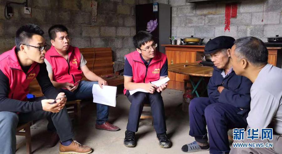 廣西田東縣作登瑤族鄉隴那村駐村第一書記李宇翔(左三)在走訪貧困戶(資料照片)。 新華社發
