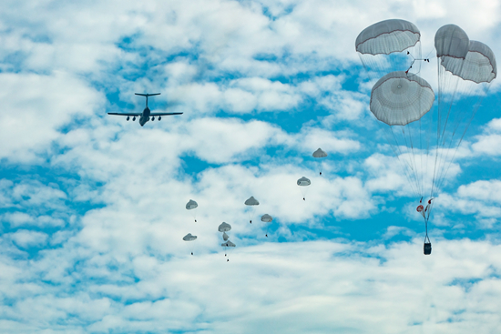 2000年8月,空降兵成功進(jìn)行了一次連投30件作戰(zhàn)物資的試驗(yàn),超過(guò)國(guó)外一次連投最多22件的紀(jì)錄,這是空降作戰(zhàn)物資實(shí)施快速補(bǔ)給最有效的方法,從此,空降兵有了可靠的“機(jī)動(dòng)式倉(cāng)庫(kù)”。
