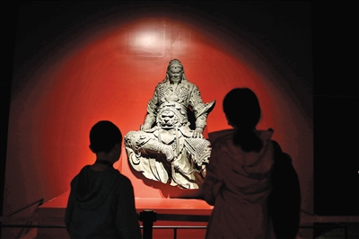 觀眾觀看明代關公坐像,河南新鄉博物館藏。本組稿件攝影/新京報記者 浦峰