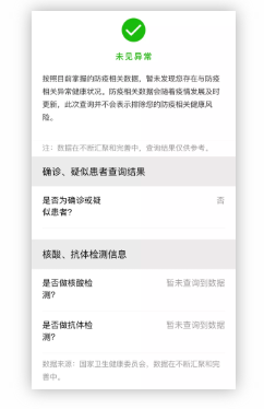 如核酸檢測結果為陰性,則防疫健康風險狀態顯示“未見異常”。