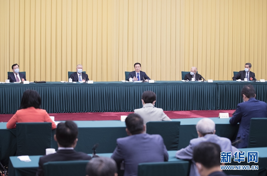 5月23日,中共中央政治局常委、國務院副總理韓正看望出席全國政協十三屆三次會議的港澳地區全國政協委員并參加討論。 新華社記者 王曄 攝