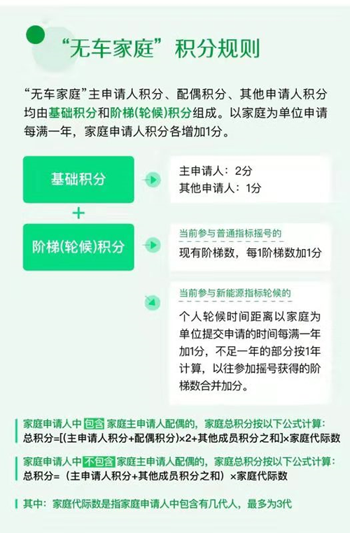 如果家庭成員中有多名成員符合作為家庭主申請人的條件,是可以組合成多個“無車家庭”來申請指標的。不過,作為一個家庭來申請時,家庭申請人越多,家庭總積分就越高,獲得指標的概率也更高。