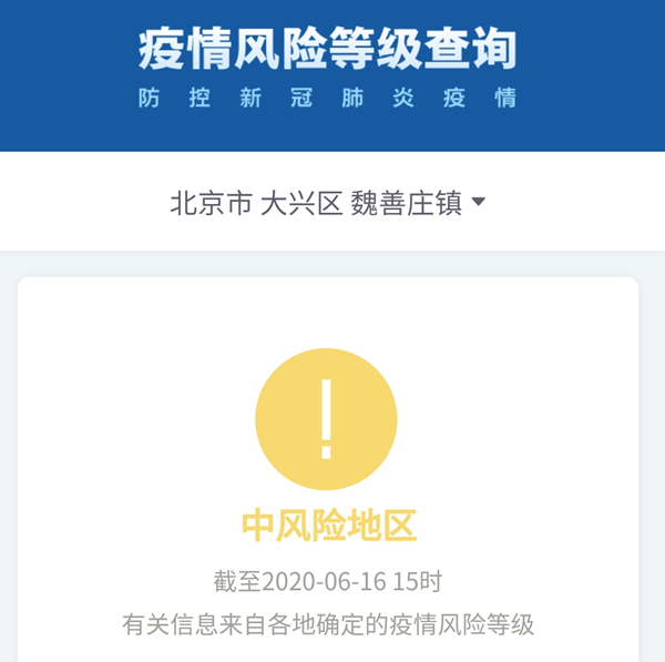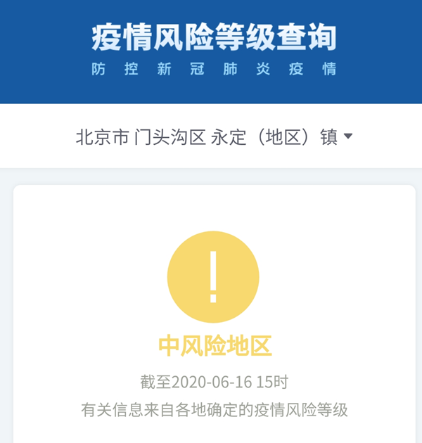 根據(jù)國(guó)務(wù)院客戶端小程序,北京又有5個(gè)地區(qū)升級(jí)為中風(fēng)險(xiǎn)。分別為:
