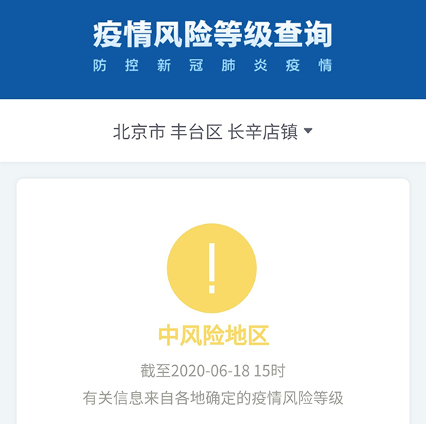 不過,今天有一處調整:豐臺區長辛店鎮升級為中風險地區,而長辛店街道“降級”為低風險地區。