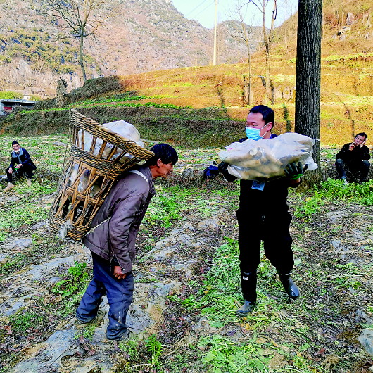 納雍縣羊場鄉菜子地村扶貧特崗陳熙(右)幫貧困戶采收蘿卜。