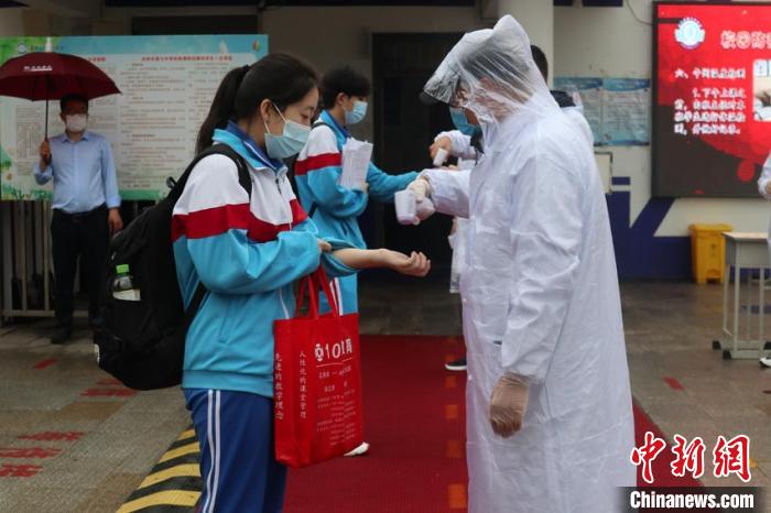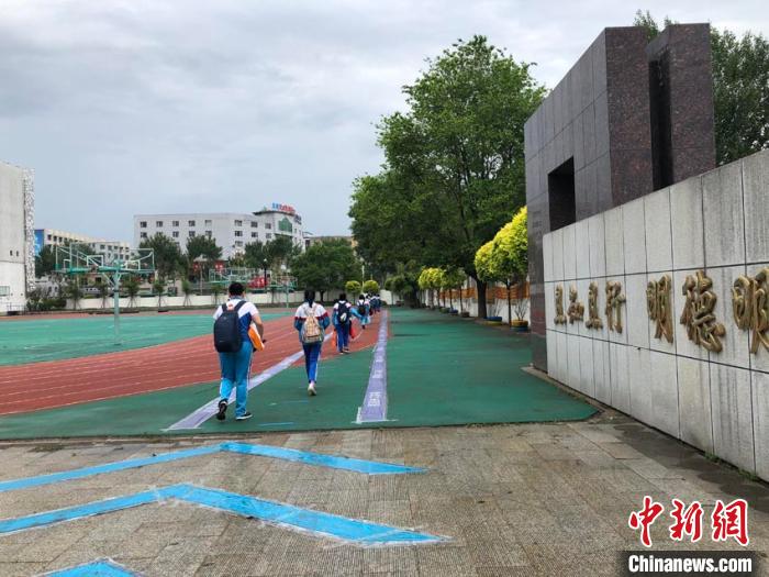 6時30分,該校初三學生陸續返回校園。在校門前,他們按照地面上的標識保持間距,經過測溫、手部消毒后進入教學樓。當天,729名初三年級學生錯峰、錯時抵達教室。