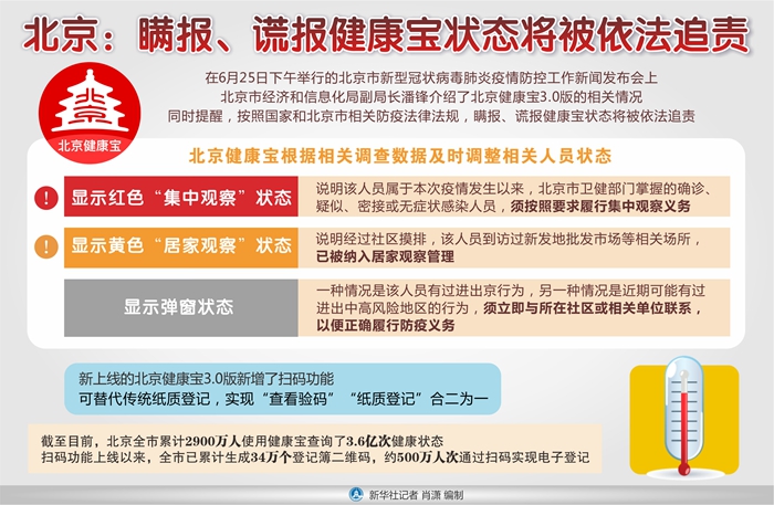 北京:瞞報、謊報健康寶狀態將被依法追責-新華網