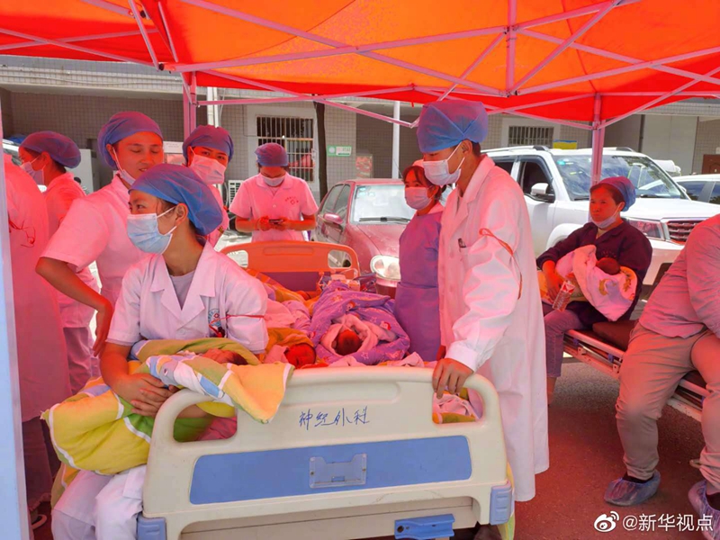7月2日,貴州省畢節市赫章縣發生4.5級地震,震源深度13千米。地震襲來,當不少人都往外疏散時,正在開展業務學習的赫章縣人民醫院新生兒科醫生們第一時間“逆行”病房,緊隨而來的還有實習生、急診科護士等。他們每人負責一個寶寶,抱著往外疏散,確保當時在病房的26個新生寶寶平安撤離到安全地帶。致敬白衣天使?。ㄓ浾咄跣旅?、駱飛 圖片來源赫章縣人民醫院)