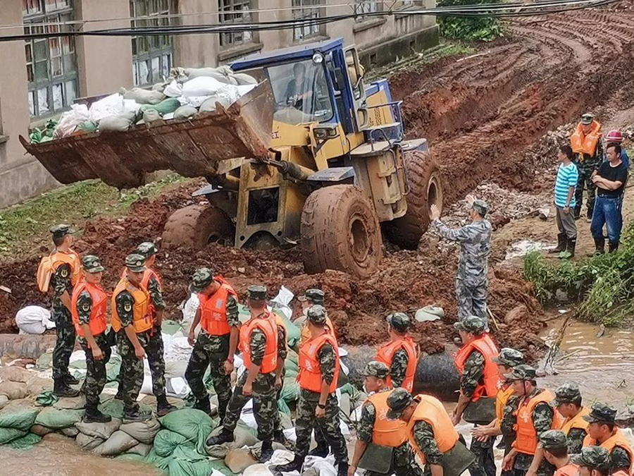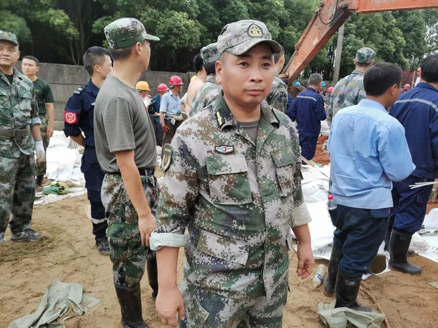 當(dāng)?shù)負(fù)岆U(xiǎn)人員、武警安徽總隊(duì)池州支隊(duì)140名武警官兵第一時(shí)間趕赴現(xiàn)場(chǎng),東至縣人武部同時(shí)組織90名地方民兵緊急支援,陳壽春位列“前鋒”。