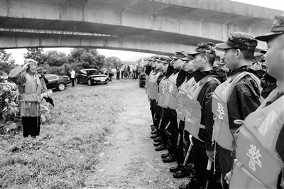 上海交通大學(xué)在讀大學(xué)生馬文斌曾在英模連隊(duì)“紅色尖刀連”服役。近日,從新聞中得知老部隊(duì)奔赴江西抗洪的消息后,他毅然向旅首長(zhǎng)遞交請(qǐng)戰(zhàn)書。得到批準(zhǔn)后,馬文斌(左一)從上海奔赴江西,和戰(zhàn)友們并肩作戰(zhàn)。劉 鵬攝