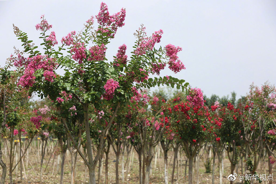 近日,湖北省襄陽市魚梁洲援襄醫療隊紀念林盛放的紫薇花引人注目。
