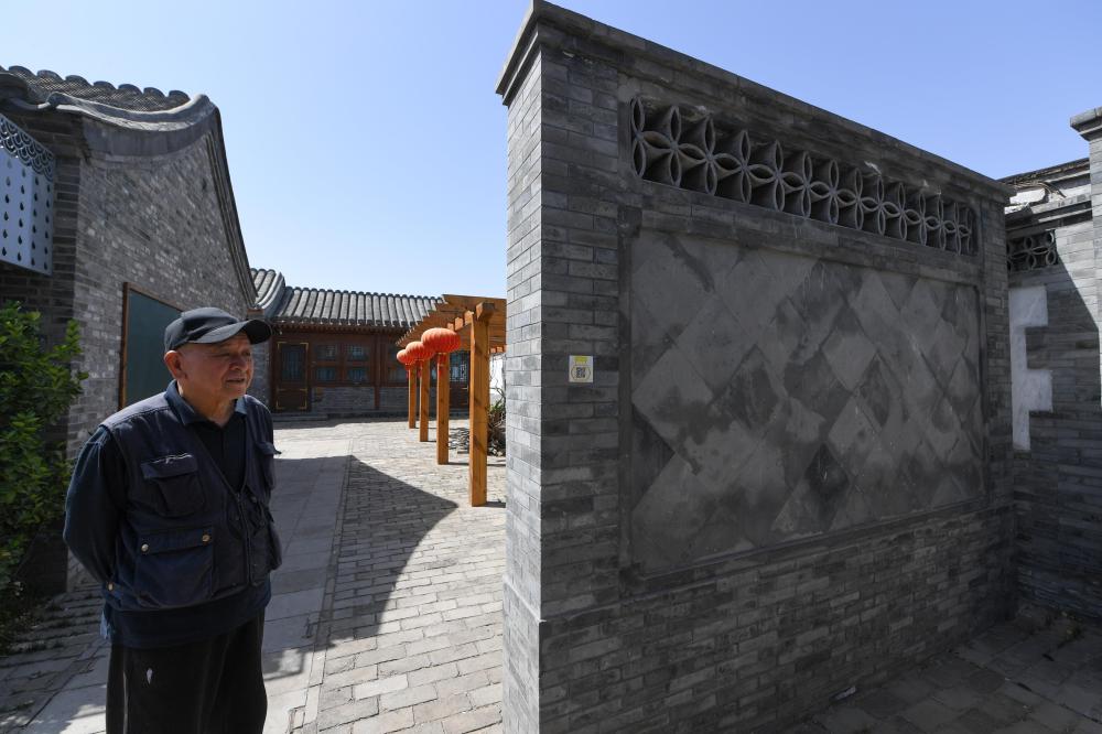 69歲的居民崇寶才在修繕一新的北京市東城區(qū)雨兒胡同30號院內(5月13日攝)。新華社記者 鞠煥宗 攝