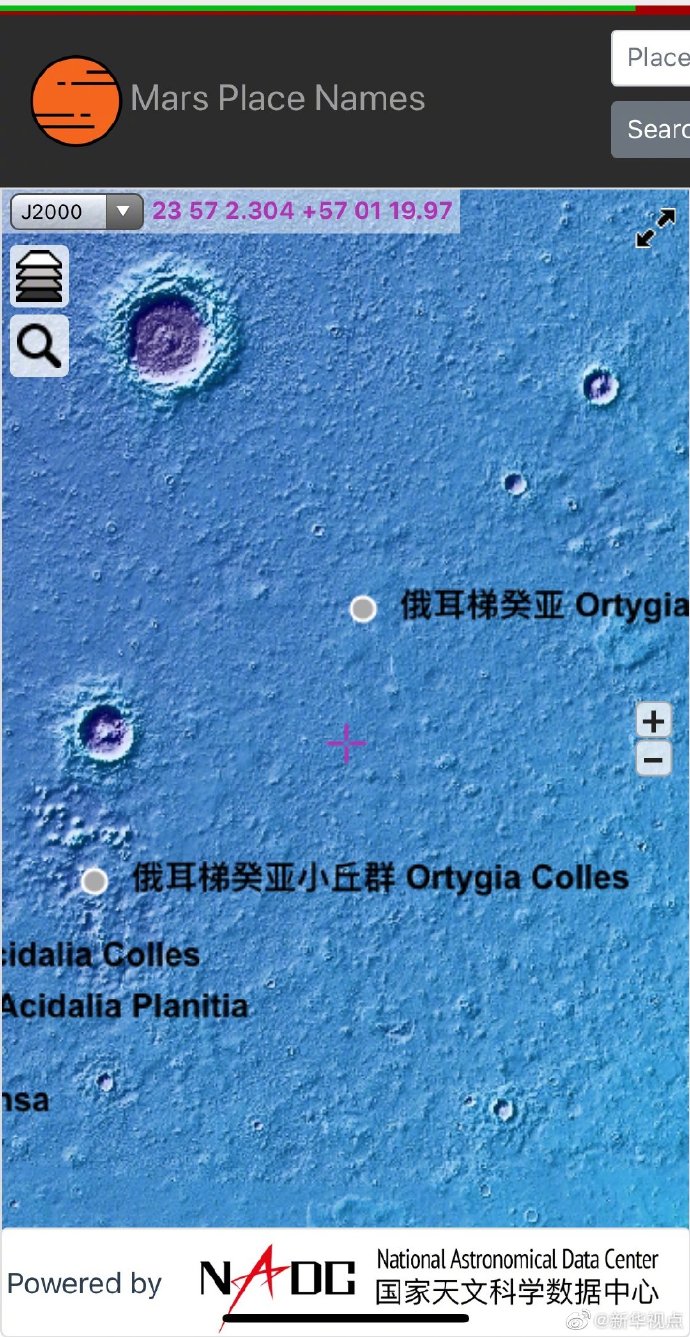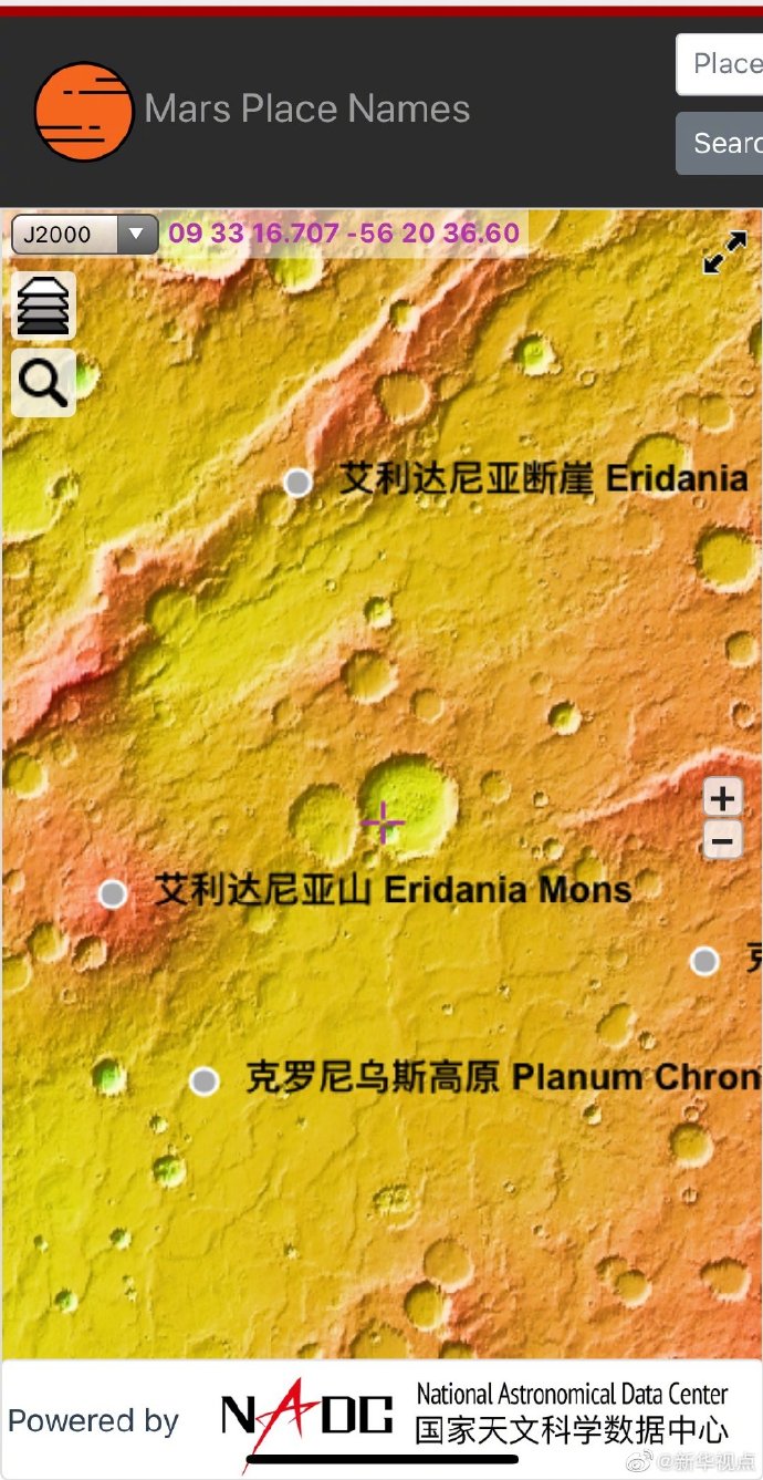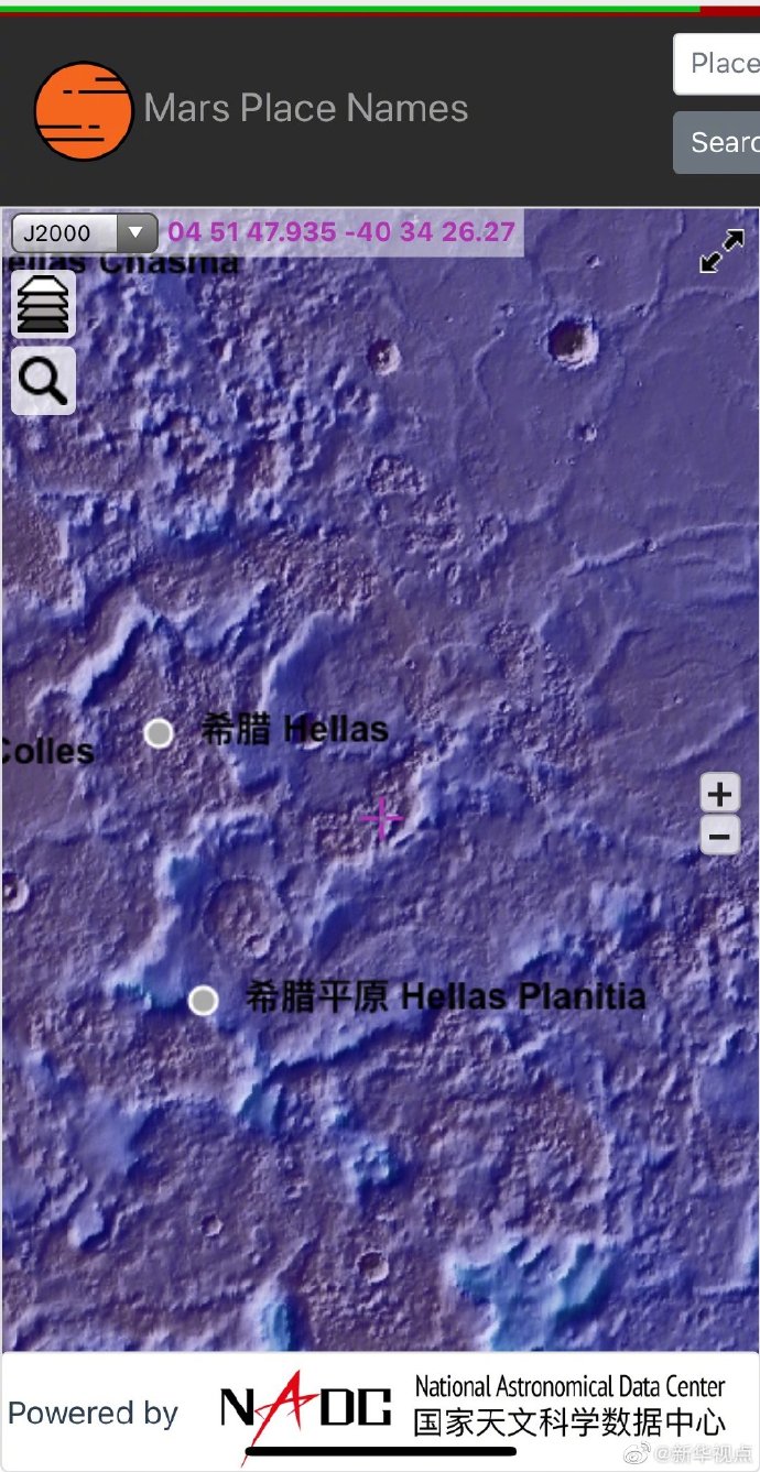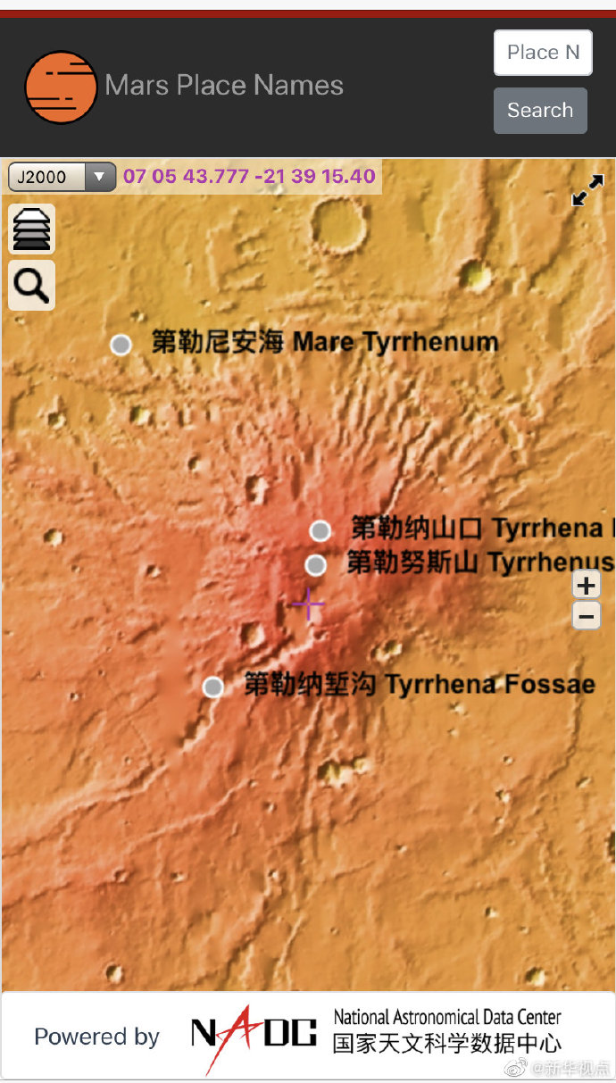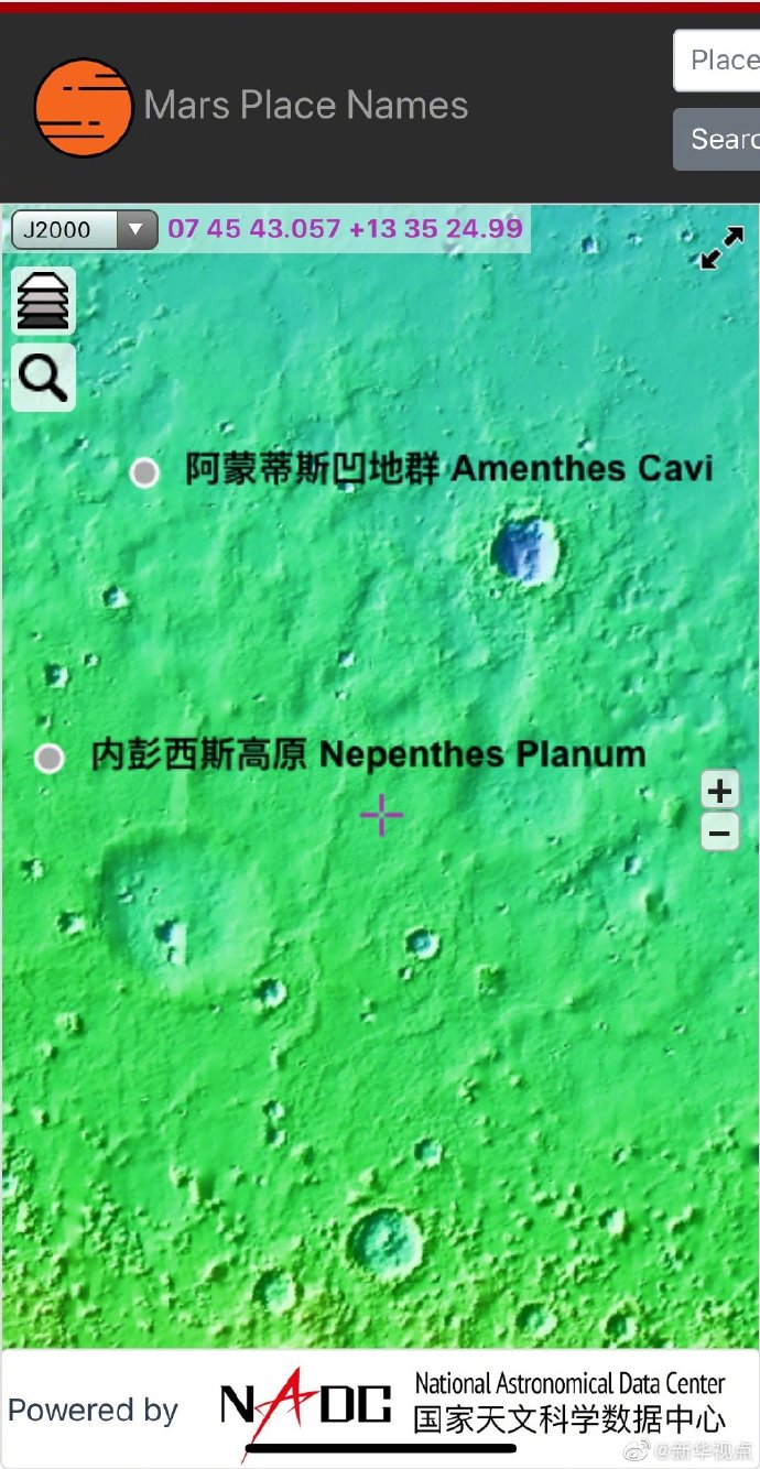 據悉,國家天文科學數據中心為這批火星地形地貌特征專門制作了可視化頁面,不僅能直觀地瀏覽火星表面地形地貌所對應的中文推薦譯名,還支持中英文地名搜索。社會各界在試用過程中發現問題或有其他意見、建議,也可通過天文學名詞網站進行反饋。