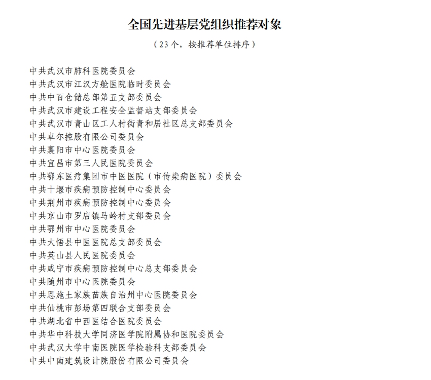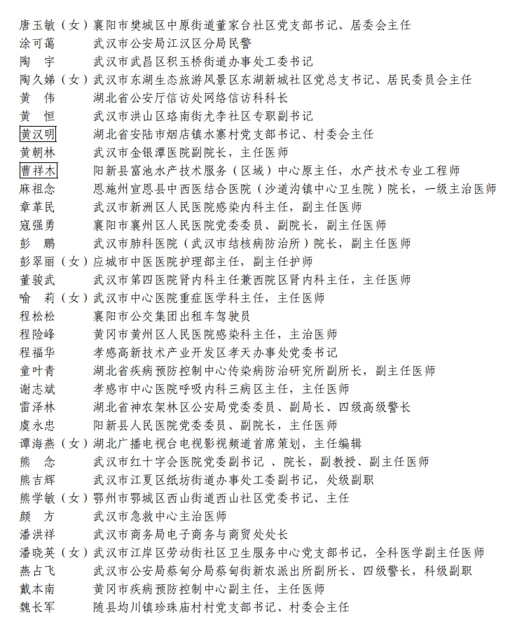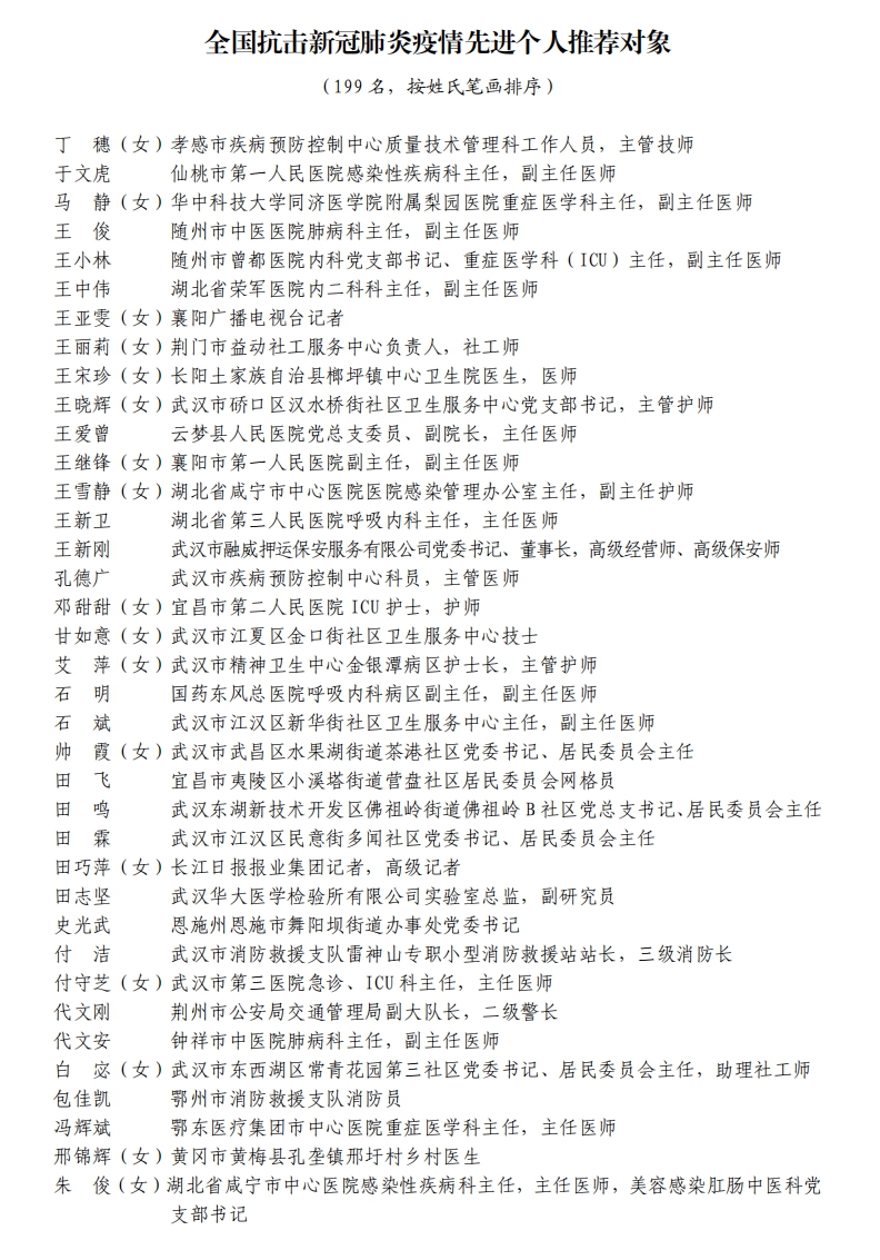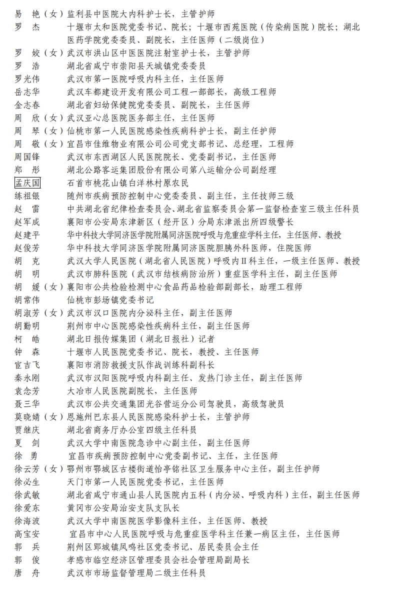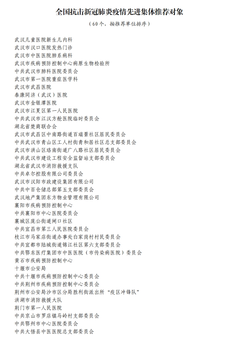 湖北抗疫國家級表彰評選推薦名單公示:劉智明等入選-新華網