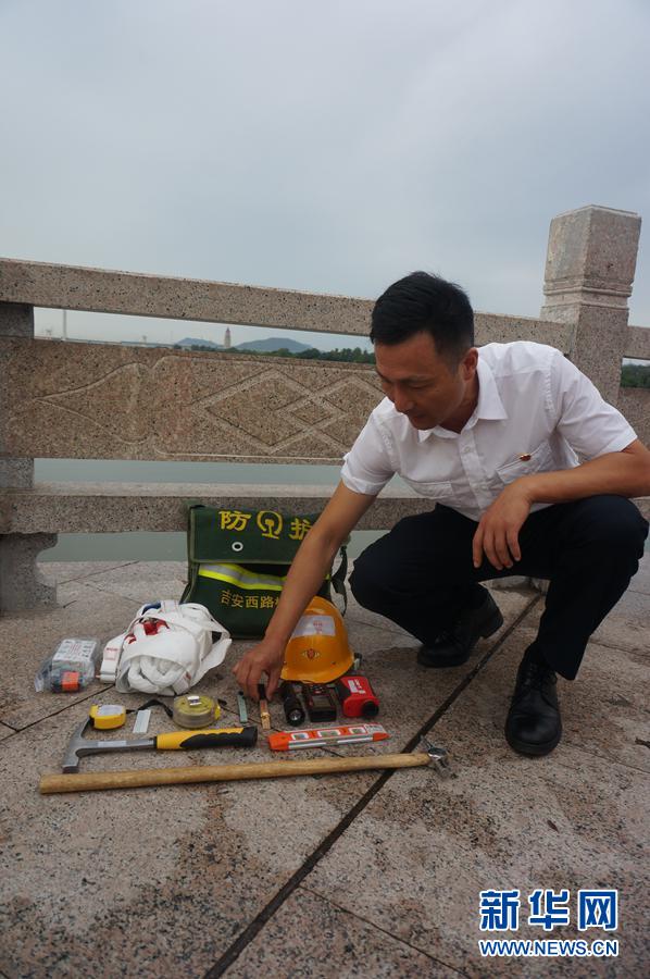 8月19日,路橋專業工程師張宏斌介紹工具袋里的檢修工具。新華網記者劉瓊 攝