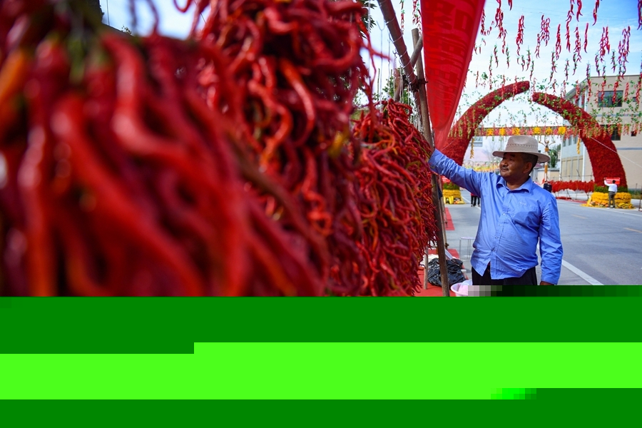農戶在2020年慶祝中國農民豐收節(jié)暨循化縣消費扶貧“辣椒節(jié)”現場銷售線辣椒。(新華網潘彬彬 攝)