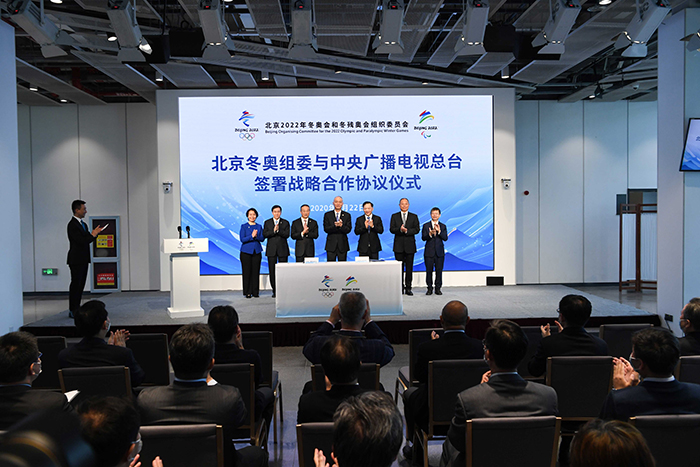 在北京冬奧會(huì)倒計(jì)時(shí)500天之際,2020年9月22日上午,中央廣播電視總臺(tái)與北京冬奧組委簽署《相約北京系列冬季體育賽事轉(zhuǎn)播工作框架合同》和《北京冬奧會(huì)電視轉(zhuǎn)播科技創(chuàng)新應(yīng)用及科技冬奧重點(diǎn)專項(xiàng)技術(shù)協(xié)同戰(zhàn)略合作框架協(xié)議》,標(biāo)志著雙方冬奧宣傳轉(zhuǎn)播報(bào)道、科技創(chuàng)新引領(lǐng)合作進(jìn)入新階段。