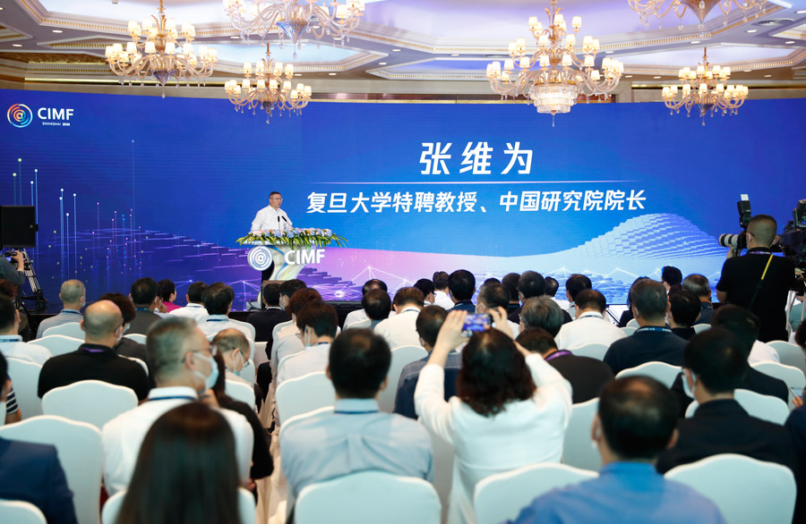 ??? 9月27日,2020中國(guó)網(wǎng)絡(luò)媒體論壇內(nèi)容論壇在上海舉行,各界嘉賓圍繞“后疫情時(shí)代網(wǎng)絡(luò)傳播的‘變’與‘新’”這一主題開(kāi)展探討和交流。圖為復(fù)旦大學(xué)中國(guó)研究院院長(zhǎng)、特聘教授張維為作主題演講。