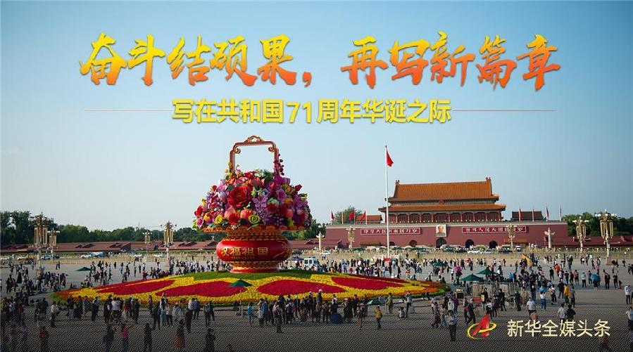 鮮艷的五星紅旗迎風招展,人民英雄紀念碑巍然聳立