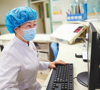新疆醫(yī)科大學第五附屬醫(yī)院護理人員在核對醫(yī)囑。金 娜攝
