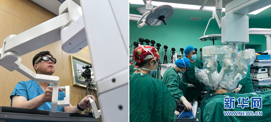 左圖:9月24日,在青島大學附屬醫(yī)院,醫(yī)院副院長、教授牛海濤使用新一代國產原研手術機器人——“妙手”為貴州省安順市的患者實施超遠程手術。新華社記者 李賀 攝