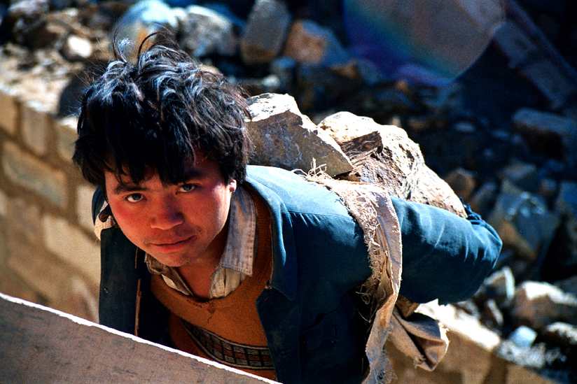 面對惡劣的生存環(huán)境,西疇人民“地瘦要壘埂,人窮要發(fā)狠”,用鏨子一點(diǎn)一點(diǎn)鑿,用大錘一錘一錘敲,用雙手一處一處刨,建成了“保水、保土、保肥”的三保臺地。圖為2010年蚌谷鄉(xiāng)長箐片區(qū)群眾正在實(shí)施土地整治。(呂德仁攝)